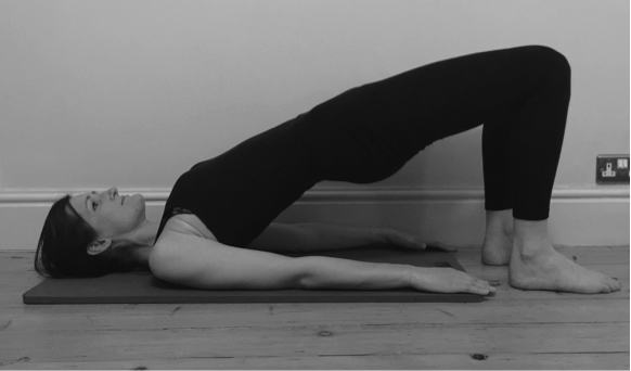 • Breathe out and curl up your tailbone so your lower back is gently pressed into the mat.