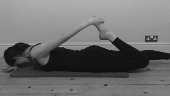 • Breathe out and reach away through your hands, lifting your shoulder blades off the floor.