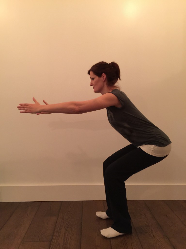 • Your gaze should remain forward but lower slightly as you squat so you keep the length through the back of your neck.